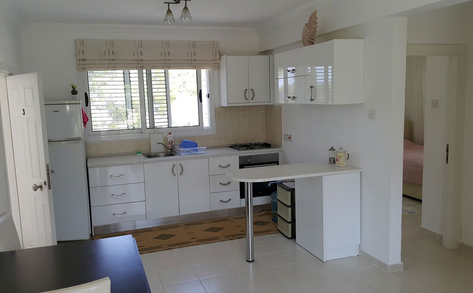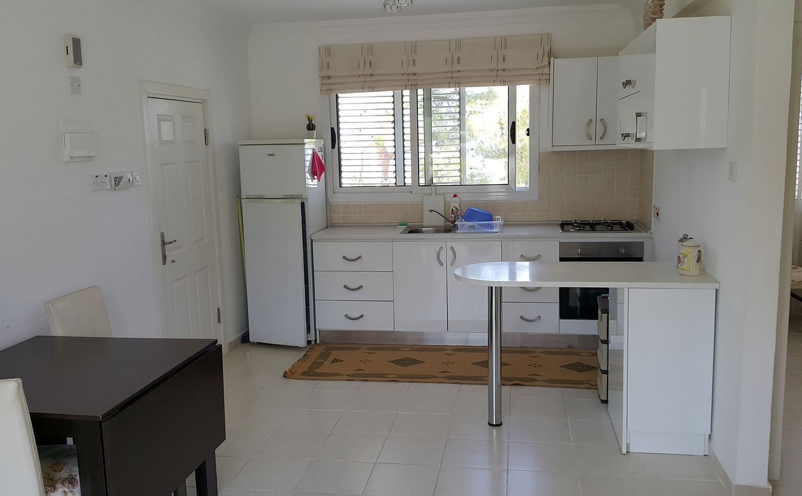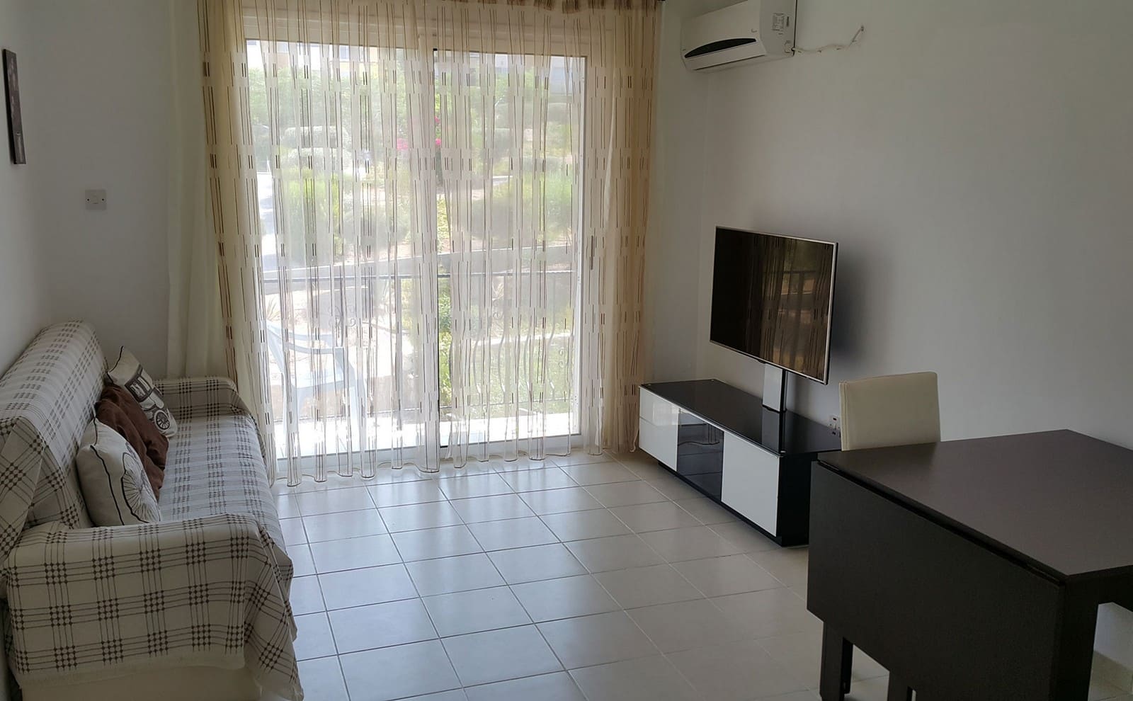 Эта квартира полностью обставлена мебелью и техникой.