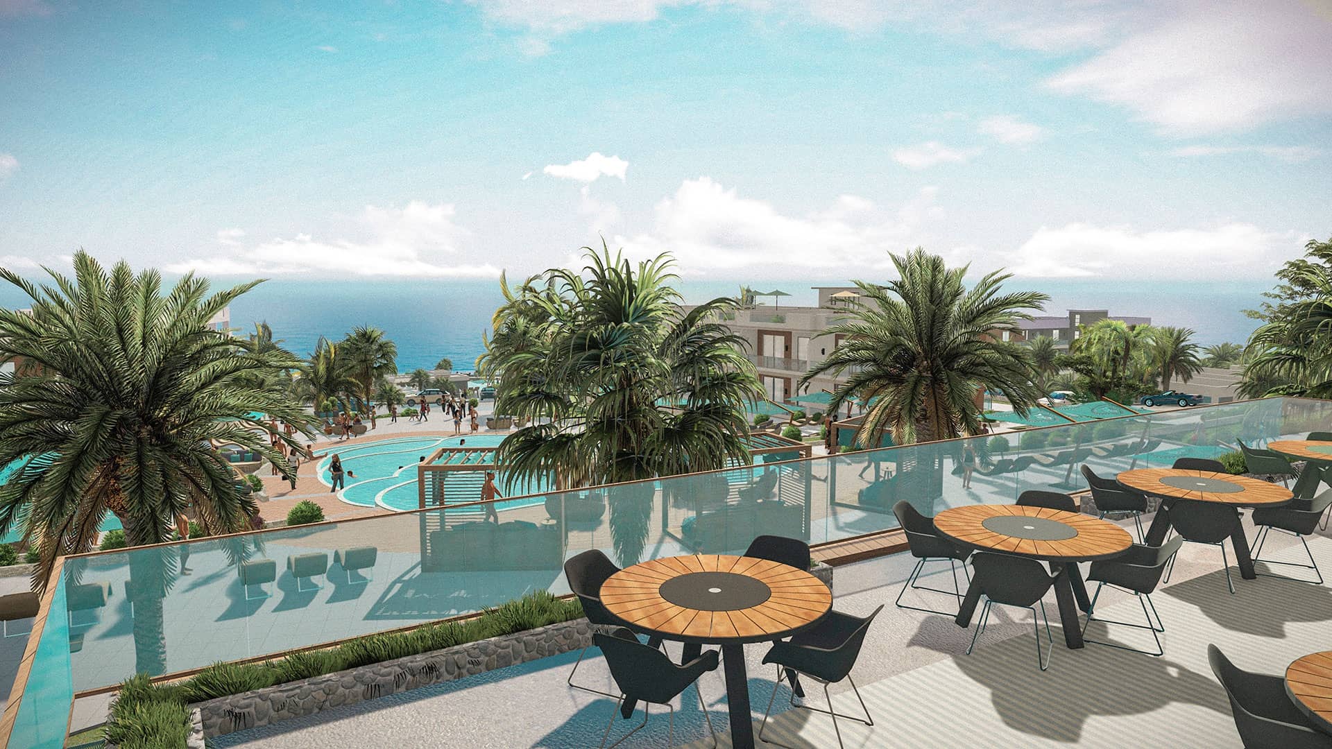 Наслаждайтесь потрясающим видом на Средиземное море с любимыми тропическими напитками, роскошными коктейлями или ледяным пивом.