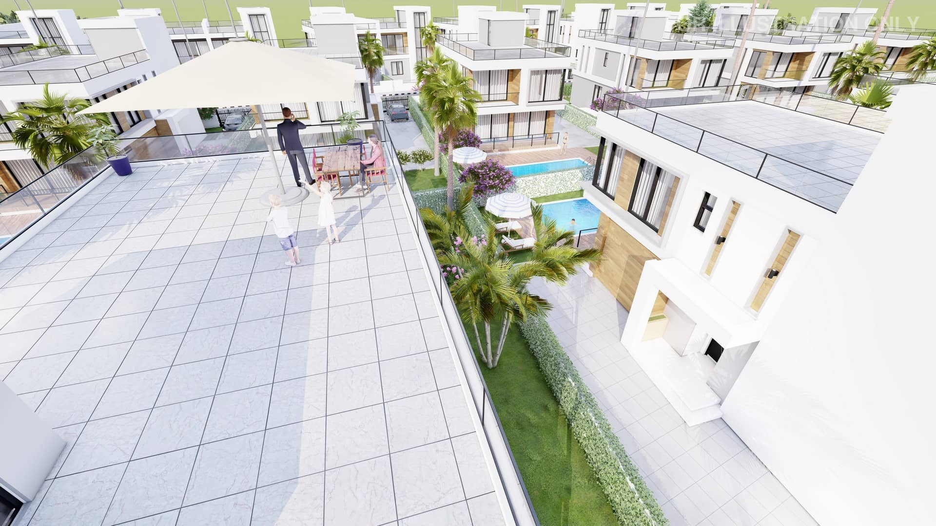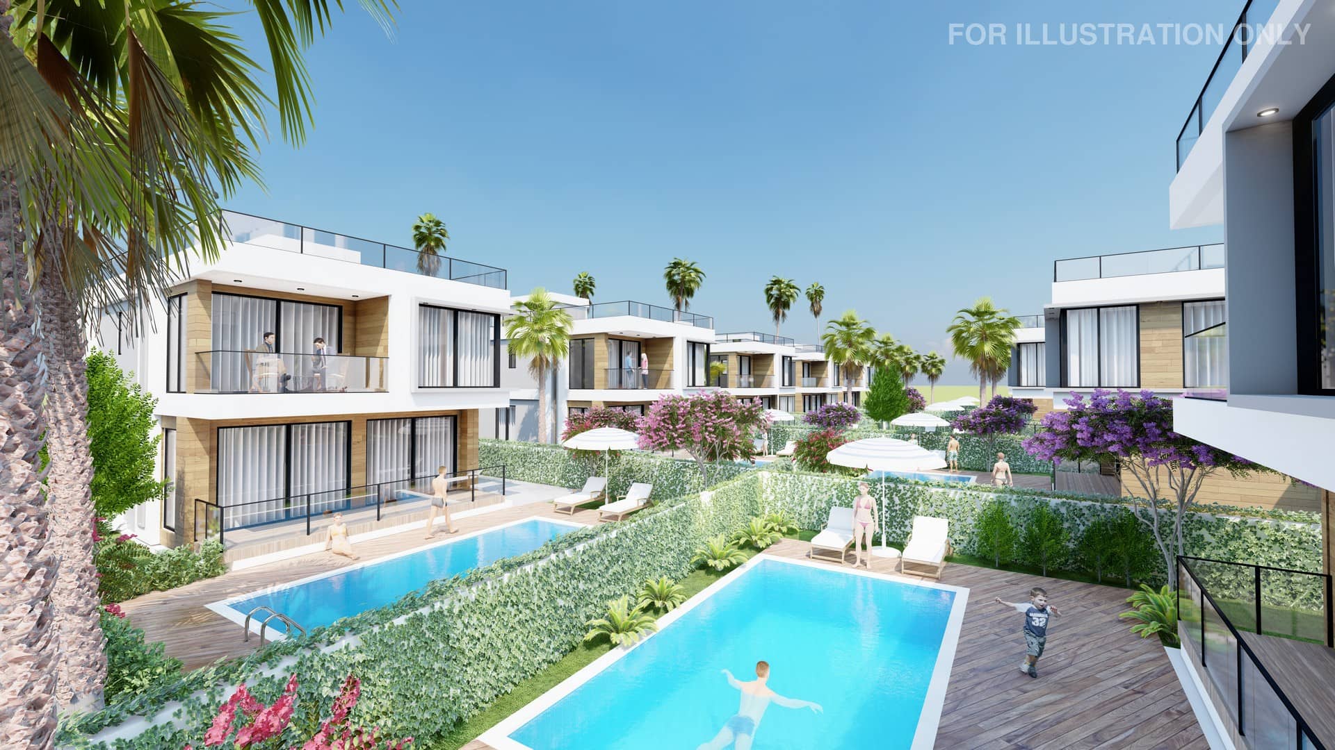 Комплекс расположен рядом с песчаным пляжем на берегу Средиземного Моря. Эти роскошные виллы на берегу моря с большим аквапарком работают по системе «все включено», — настоящее очарование Северного Кипра. Вы можете чередовать различные виды досуга, такие как умиротворяющий Пилатес под деревьями или бодрящий вейкбординг на море.​